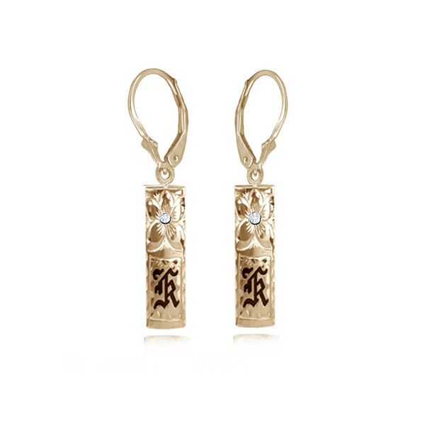 14K Yellow Gold Hawaiian Initial Lever Back Earrings with Diamond Plumeria