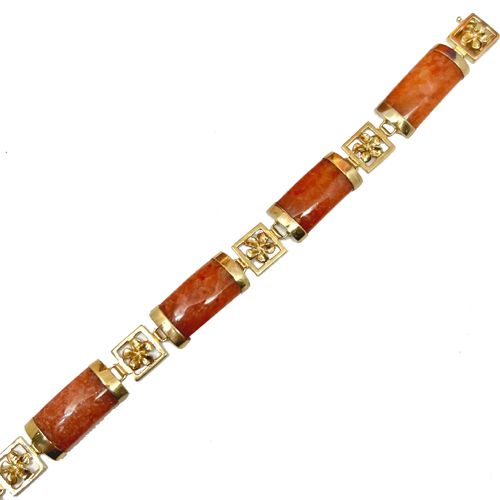 14KT Yellow Gold Plumeria Filigree with Red Jade Bracelet