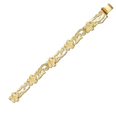 14kt Tri-Color Gold Hawaiian Plumeria Scroll Bracelet
