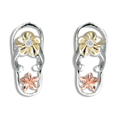 Sterling Silver Hawaiian Plumeria Clear CZ Slipper Pierced Earrings. Each slipper has a Clear CZ Plumeria on top the strap. Total length is 5/8' with High Polished to make it shinning. Always appropriate and gorgeous, these earrings are a timeless classic, and them belongs in every jewelry wardrobe.